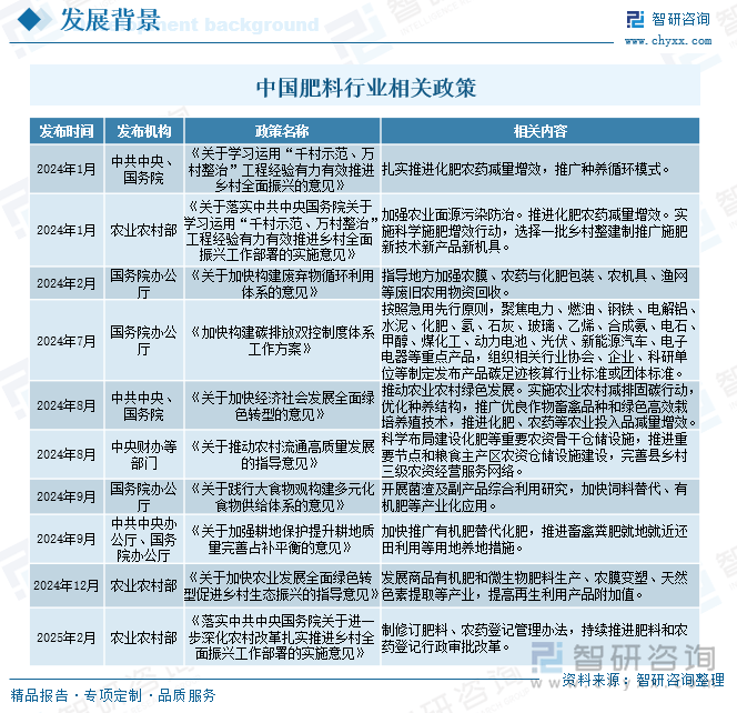 注:本文节选出自智研征询发布的《研判2025!中国肥料行业市场政策、财产链、成长示状、合作款式及成长趋向阐发:市场款式较为分离[图]》行业阐发文章,如需获取行业文章全数内容,可进入智研征询官网搜刮查看。由智研征询专家团队细心编制的《中国肥料行业市场产销款式及投资潜力研判演讲》(以下简称《演讲》)沉磅发布,《演讲》旨正在从国度经济及财产成长的计谋入手,阐发肥料行业将来的市场,挖掘肥料行业的成长潜力,预测肥料行业的成长前景,
